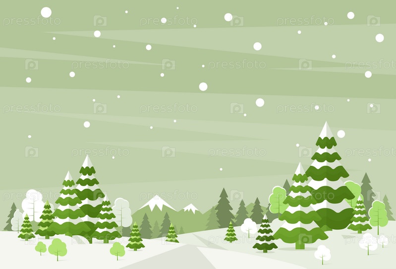 Зимний лес пейзажный фон Рождество, снег сосны деревья леса