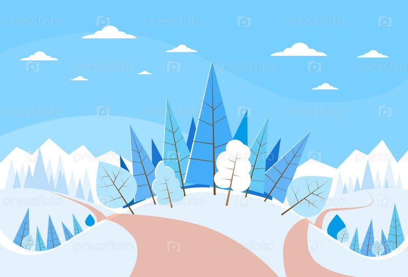 Зимний лес пейзажный фон Рождество, снег сосны деревья леса