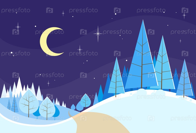 Зимний лес пейзажный фон Рождество, снег сосны деревья леса