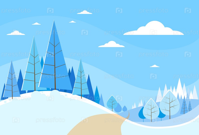 Зимний лес пейзажный фон Рождество, снег сосны деревья леса