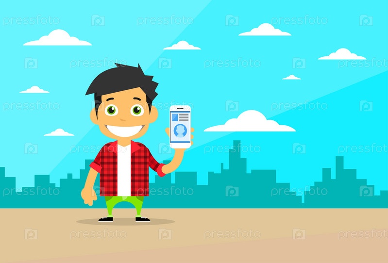 Мультфильм случайный человек характер с помощью смарт-телефона
