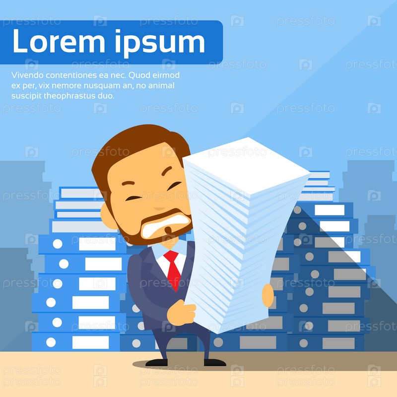 Бизнесмен ворс стека бумажных документов, много работы
