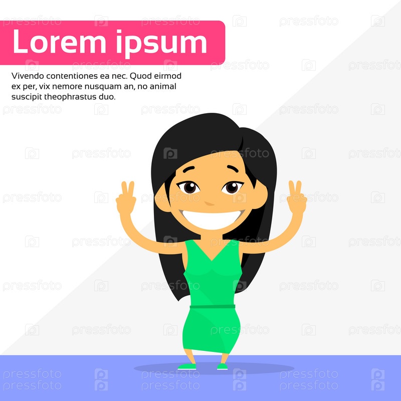Мультфильм девушка счастливой улыбкой персонаж шоу два пальца мира жест
