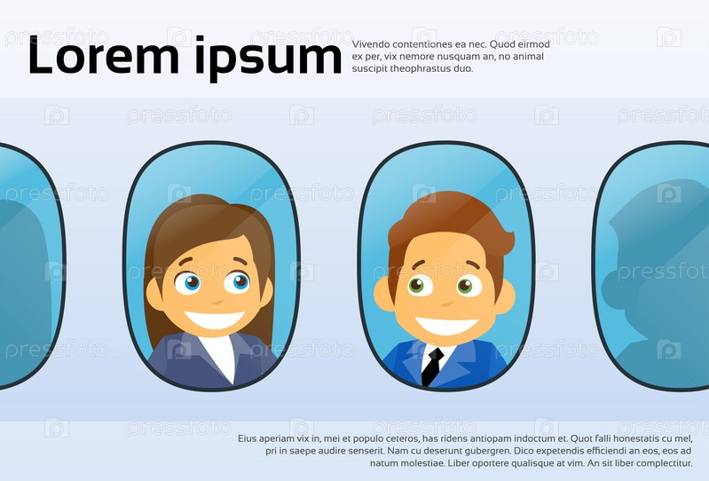 Самолет Windows мультфильм деловые люди мужчина женщина, полёт самолета