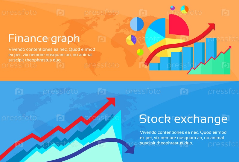 Финансов граф фондовая биржа диаграмма веб-баннер набор