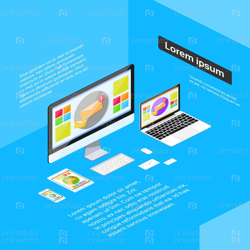 Изометрические адаптивный дизайн ноутбук телефон обои планшетом