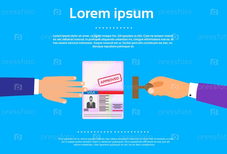 Виза штамп паспорт плоский значок бизнесмен рука