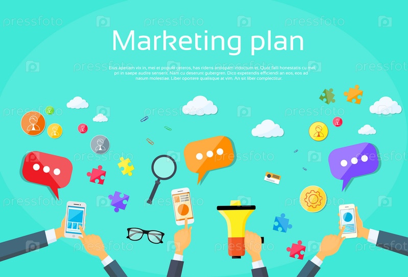 Цифровой маркетинг план творческий коллектив плоский вектор
