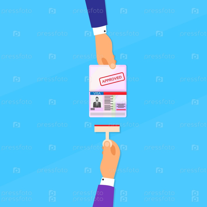 Виза штамп паспорт плоский значок бизнесмен рука