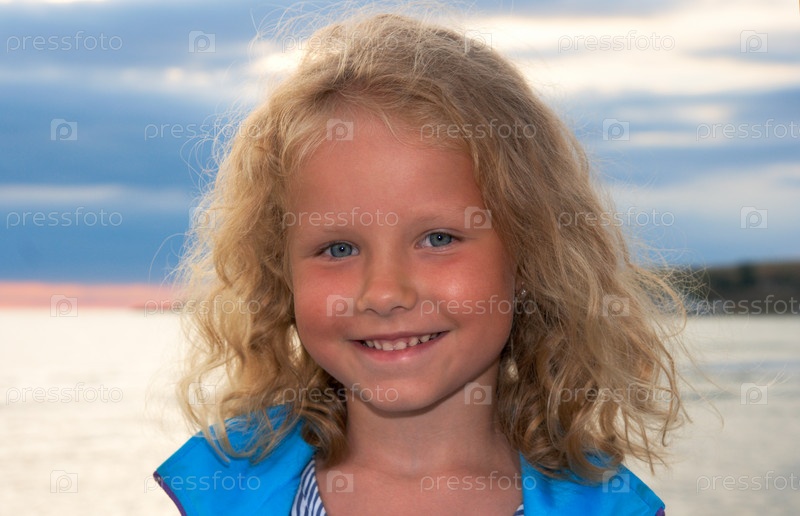 Портрет маленькой девочки вечером на побережье