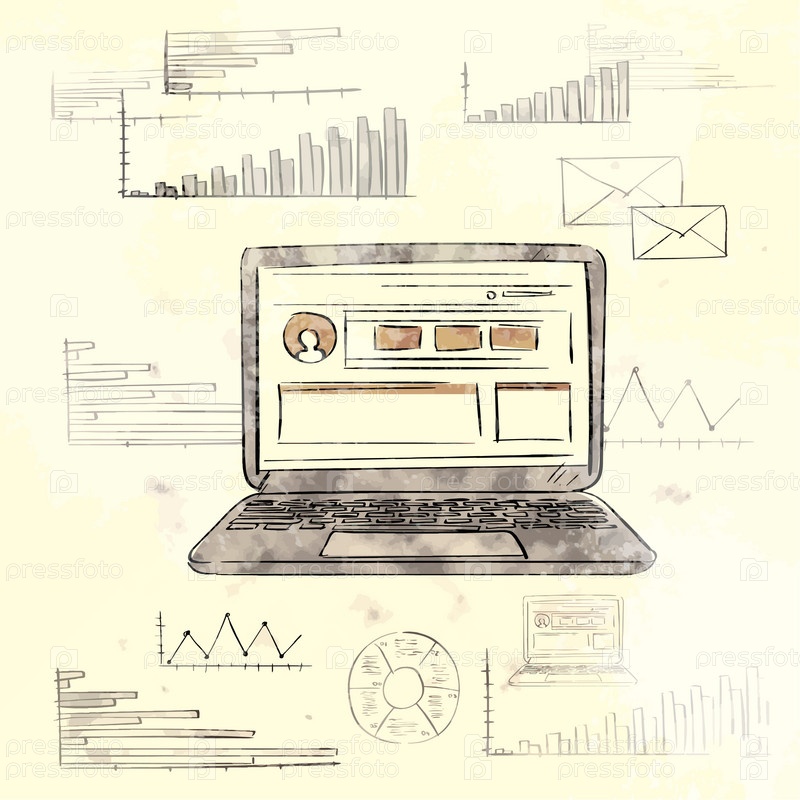 Ретро ноутбук с гранж финансов диаграммы старая бумага
