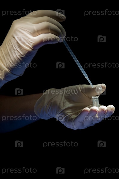 Пробирка и стеклянная трубка в руках лаборанта
