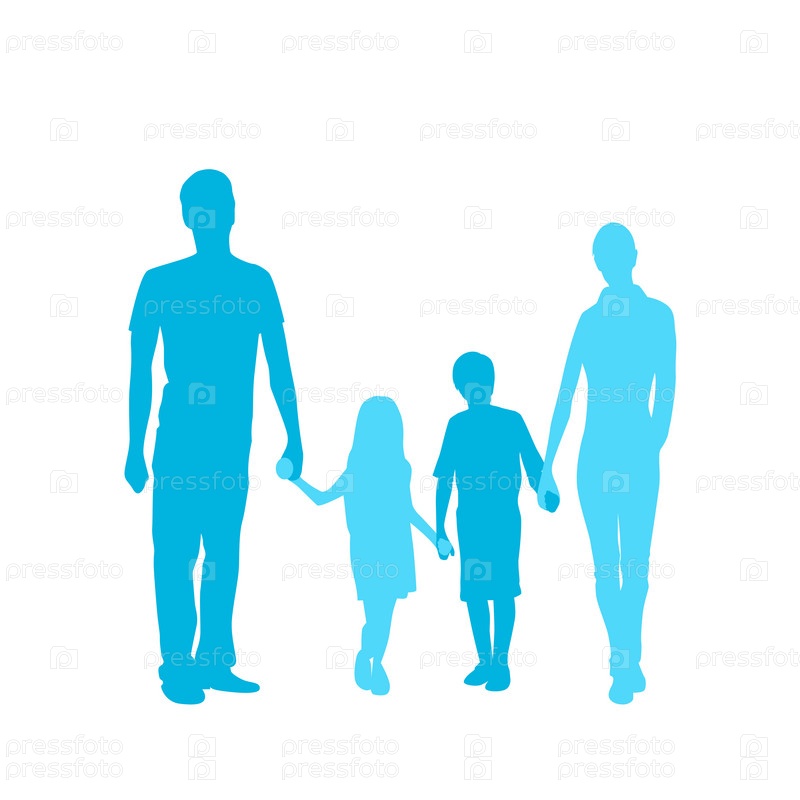 Семейный силуэт, полная длина пара с двумя детьми охватывает