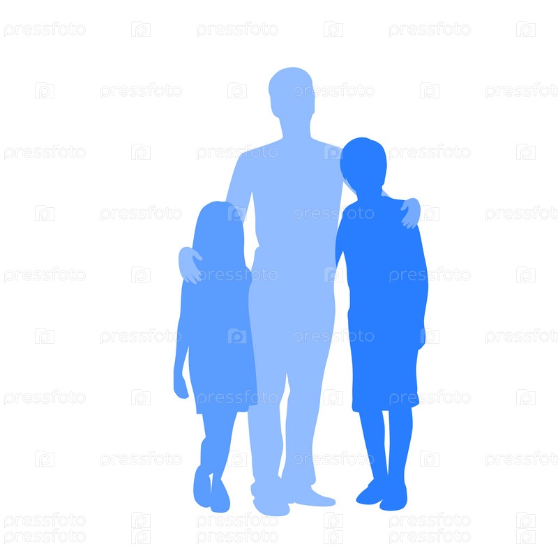 Силуэт отец семьи с двумя детьми, взявшись за руки
