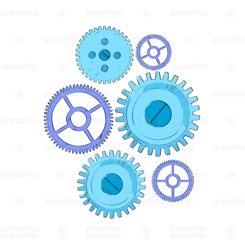 Зубчатое колесо набор голубой механические детали часть эскиз