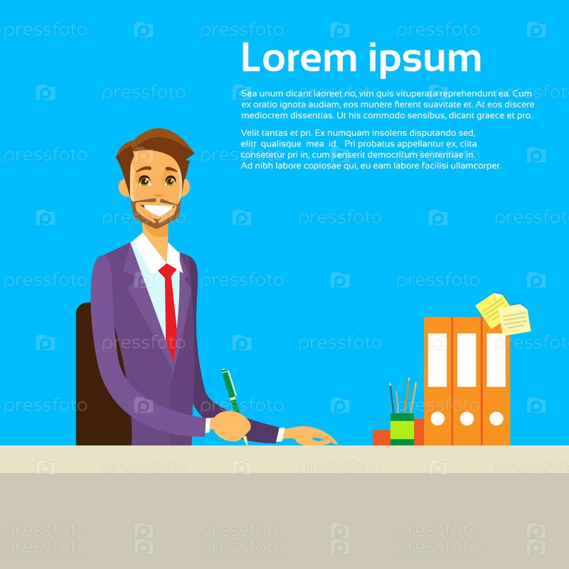 Бизнесмен, работы с документами, сидя в офисе