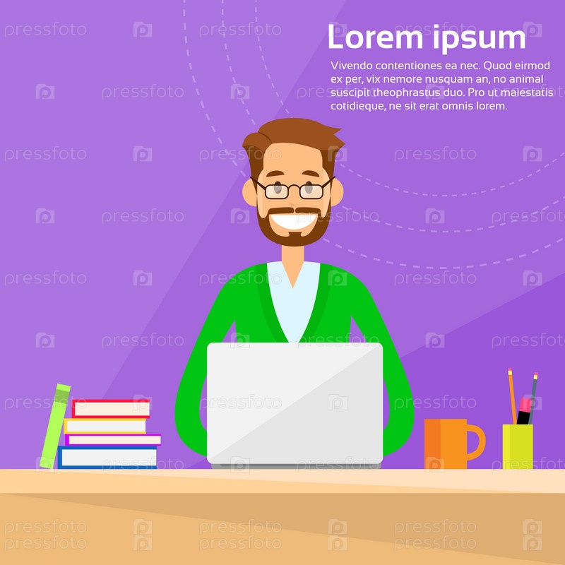 Деловой человек, сидящий стол работы портативного компьютера