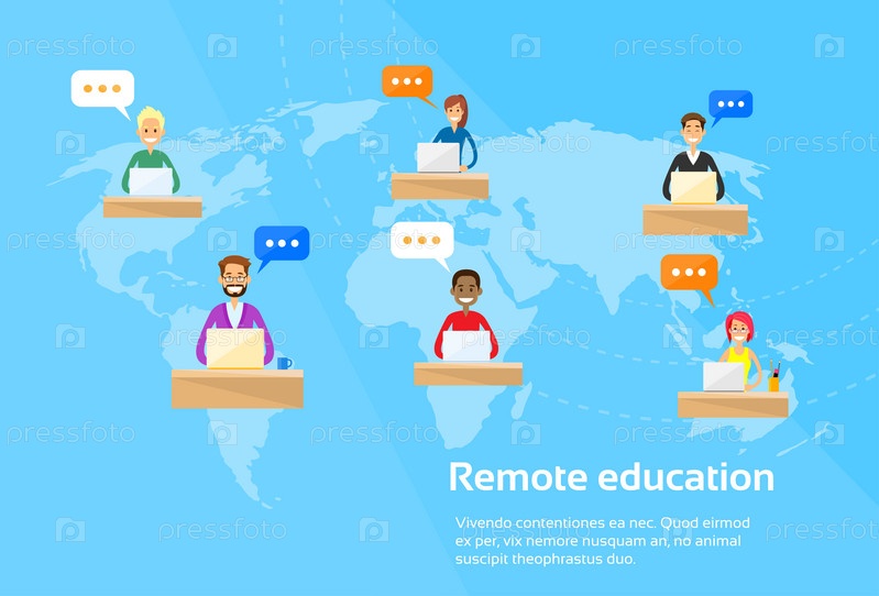 Дистанционное образование онлайн концепции студентов с помощью ноутбука