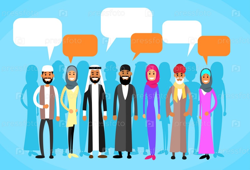 Мусульманские группы людей говорить, обсуждать чат общения социальной сети