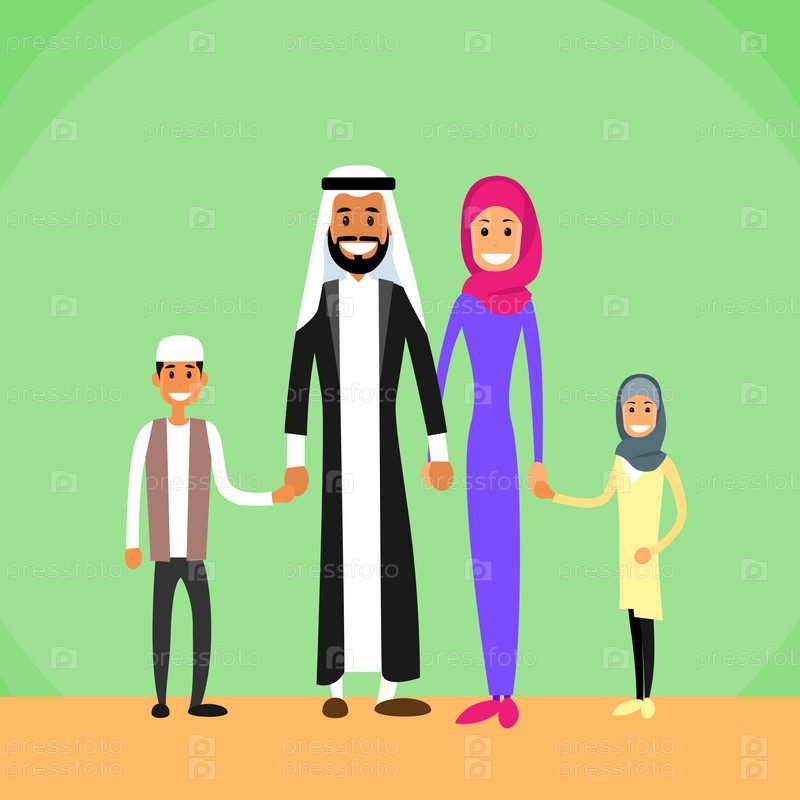 Арабские семьи четыре человека, арабский родители двух детей