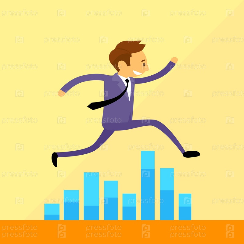 Бизнесмен запустить прыгать через финансовые диаграммы