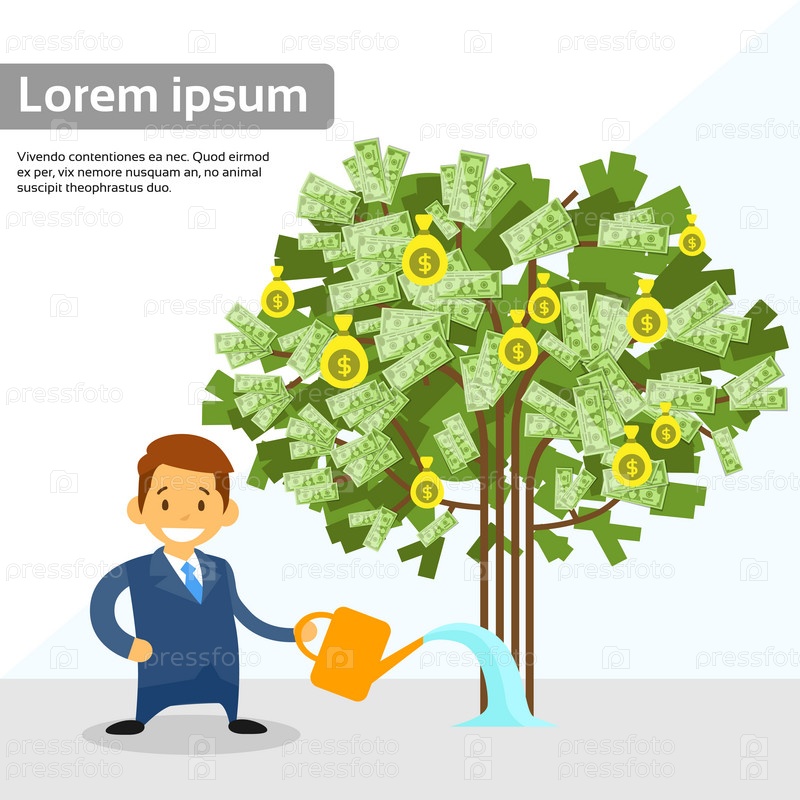 Бизнесмен, полив деньги дерево плоский вектор