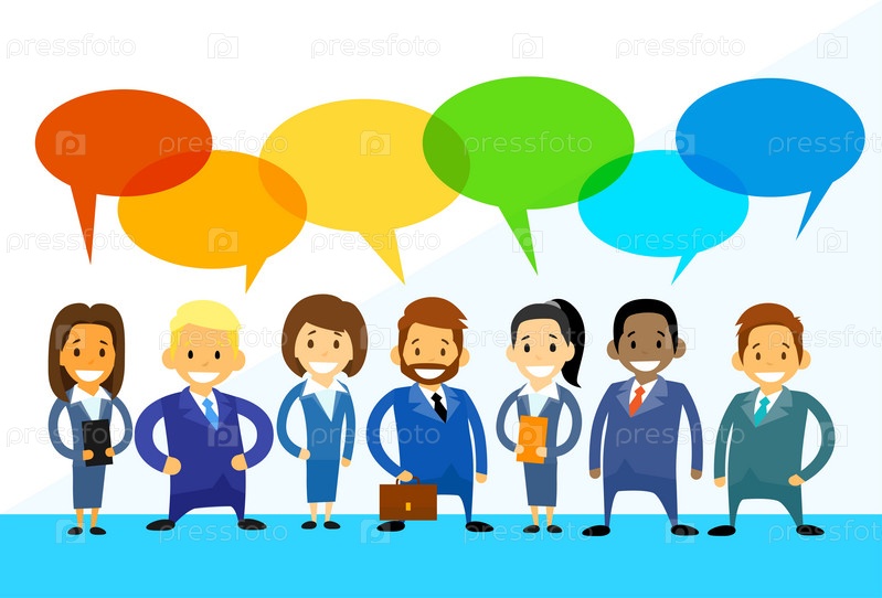 Бизнес мультфильм люди группы говорить, обсуждать чат