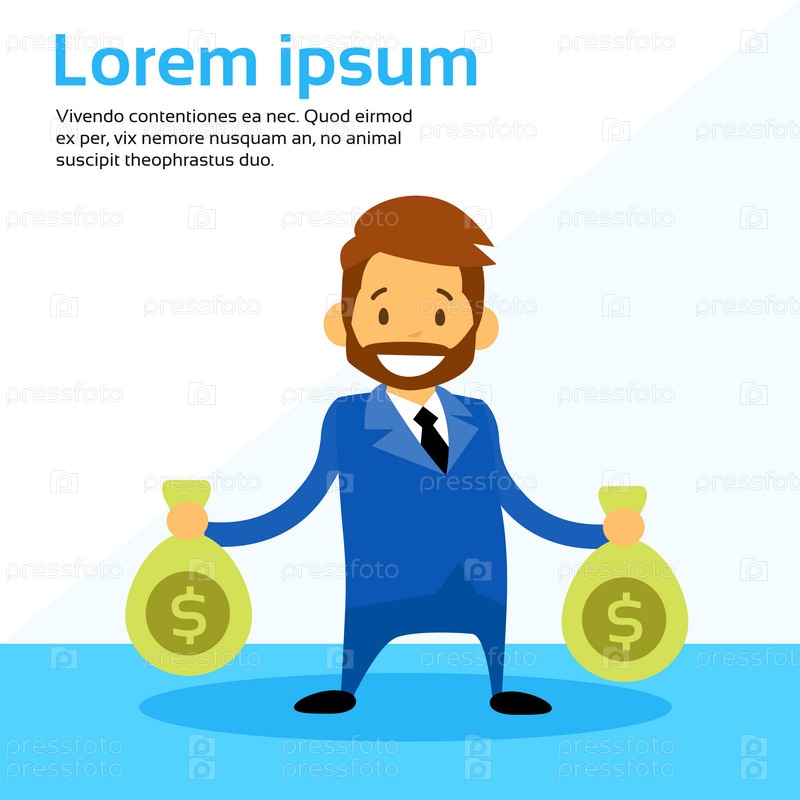 Мультфильм бизнесмен удерживать деньги мешок
