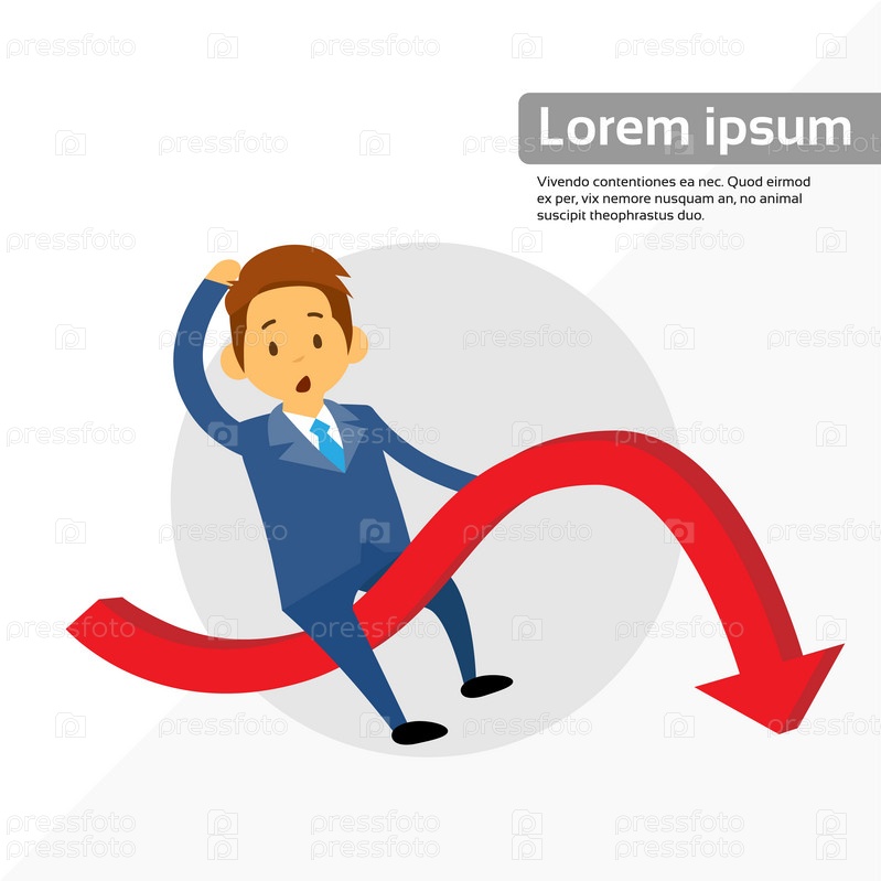 Бизнесмен, езда финансовых график красная стрелка отрицательной