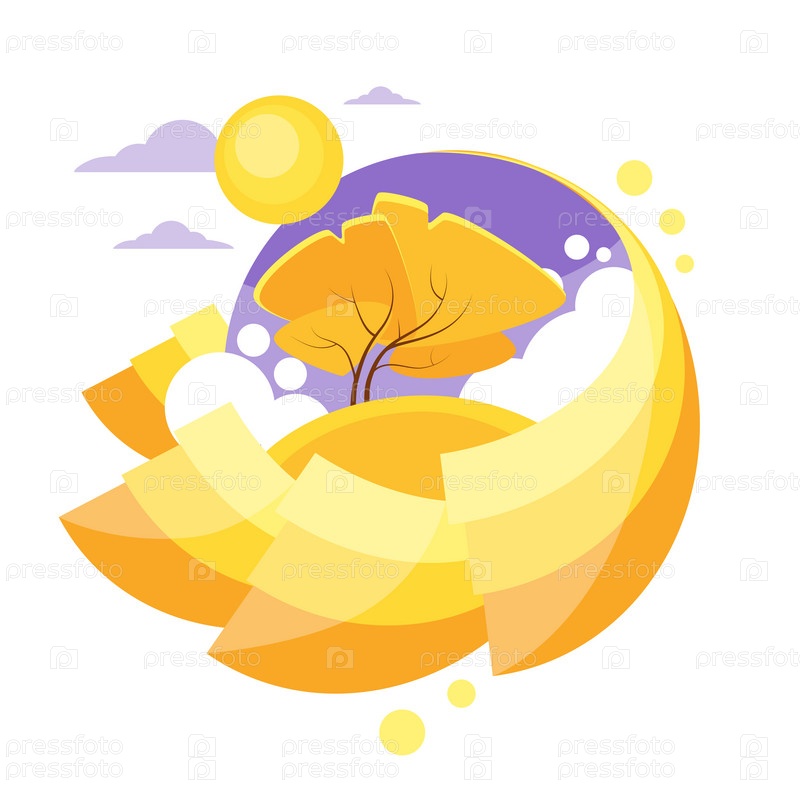 Осенние круг баннер плоский дизайн логотипа желтый дерево