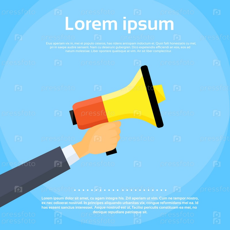 Рука держать Мегафон бизнесмен громкоговоритель плоский