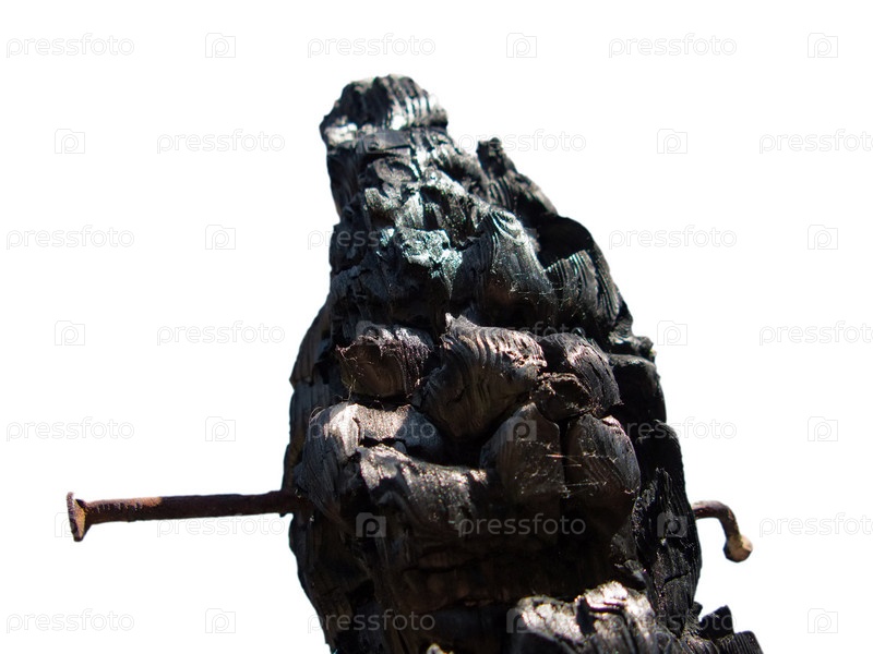 Разрушенный деревянный домик сгорел от пожара из-за черного угля