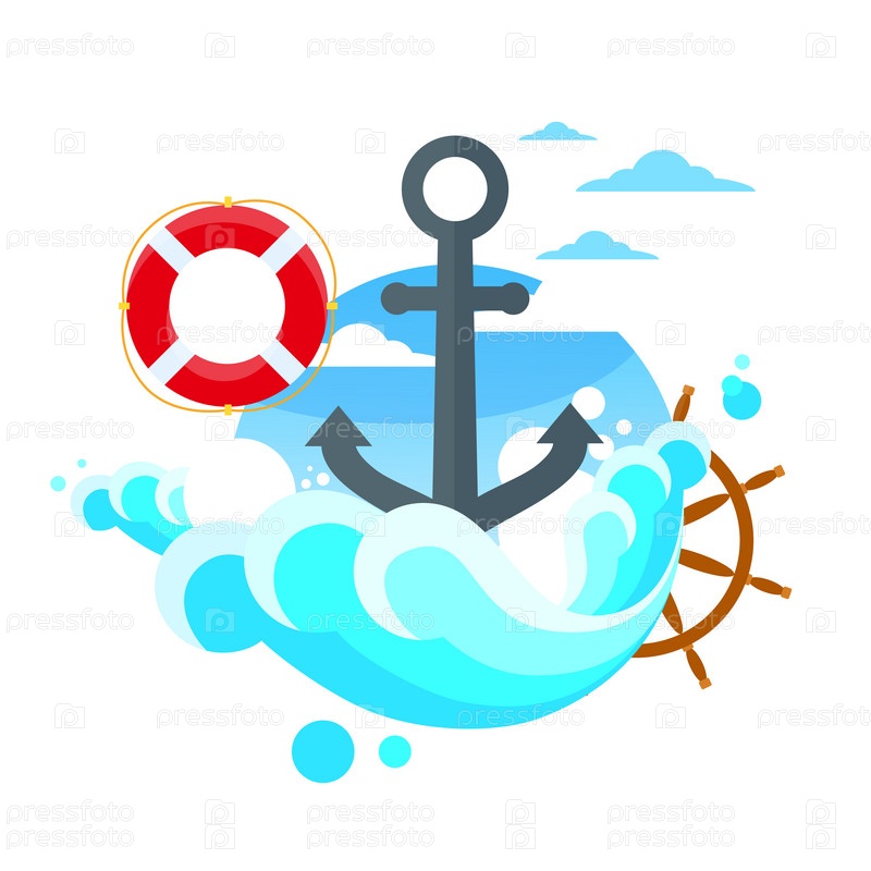 Якорь рулевое колесо морской синий плоский вектор