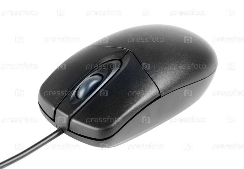 Черная лазерная компьютерная мышь на белом фоне