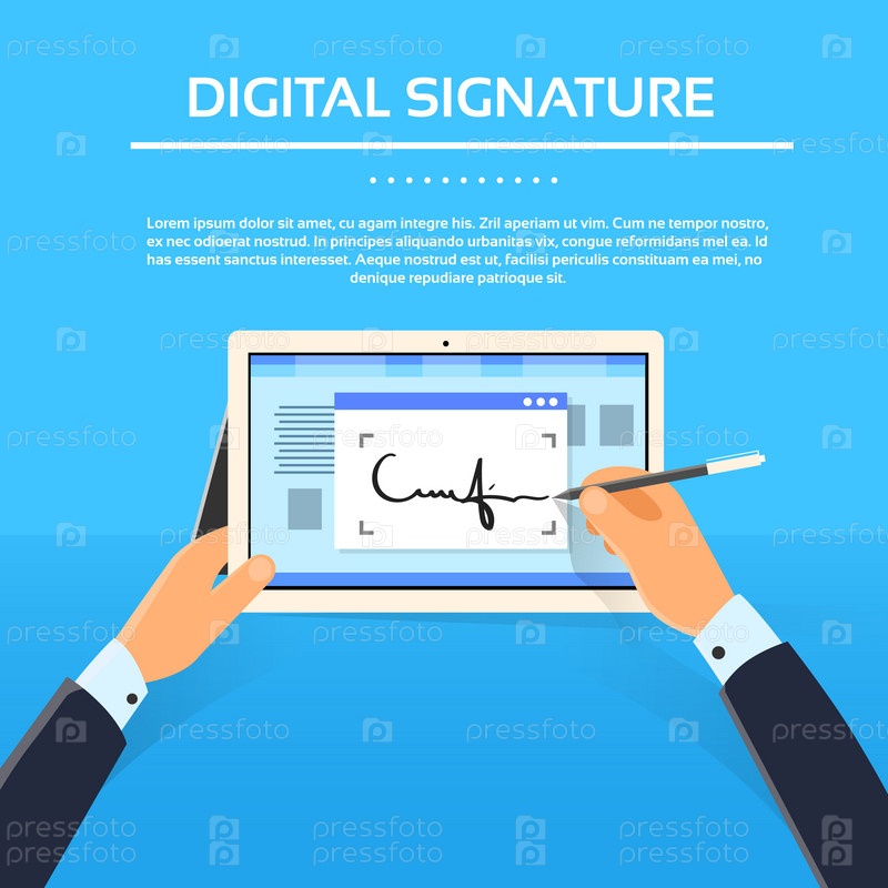 Цифровая подпись планшетный компьютер бизнесмен руки зарегистрироваться
