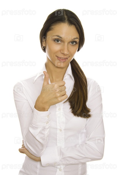 Привлекательная девушка показывает большим пальцем вверх