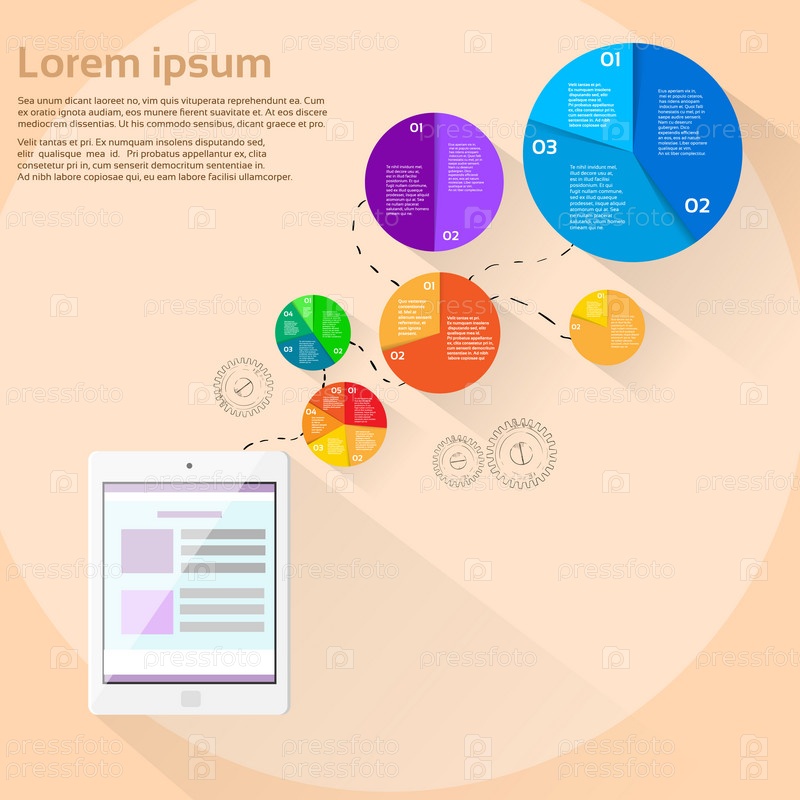 Планшетный компьютер финансов пирог схеме инфографики финансовый бизнес