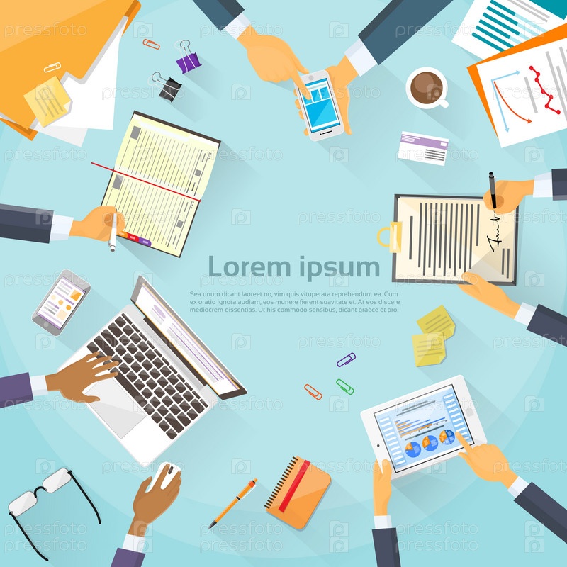Бизнес люди руки стол рабочем месте верхним углом выше мнение команды