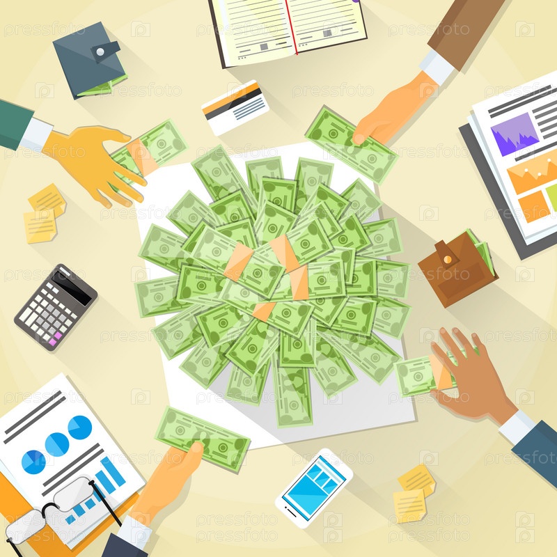 Деньги на стол руки бизнес группа людей толпы финансирование