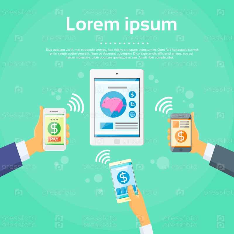 Умный телефон мобильный платеж устройство планшет бизнесмен
