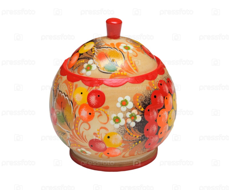 Расписная коробочка, изолированно на белом фоне
