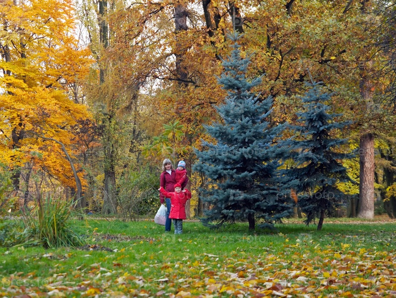 Мать с детьми в осеннем парке