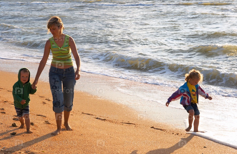 Мать с детьми на пляже