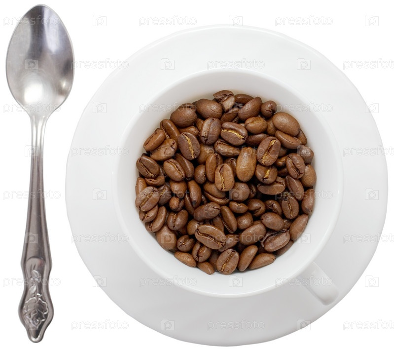 Кофейная чашка с тарелкой и кофейным зерном
