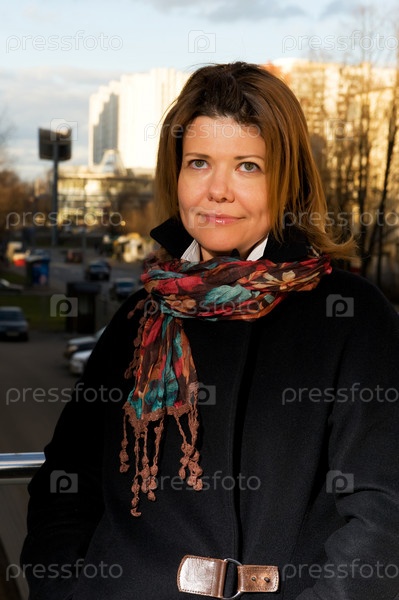 Улыбающаяся женщина на улице в осенней одежде
