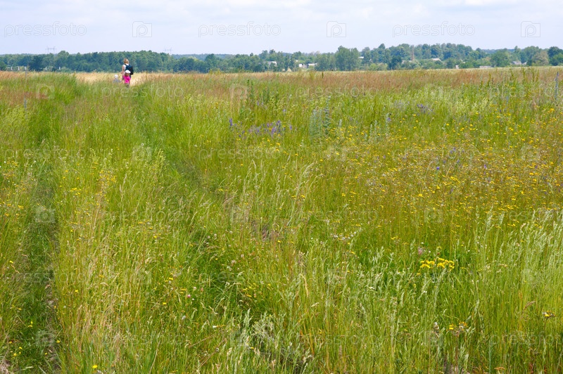 Семья на зеленом лугу