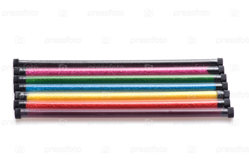 Объект на белом - трубки с цветными песком для творчества