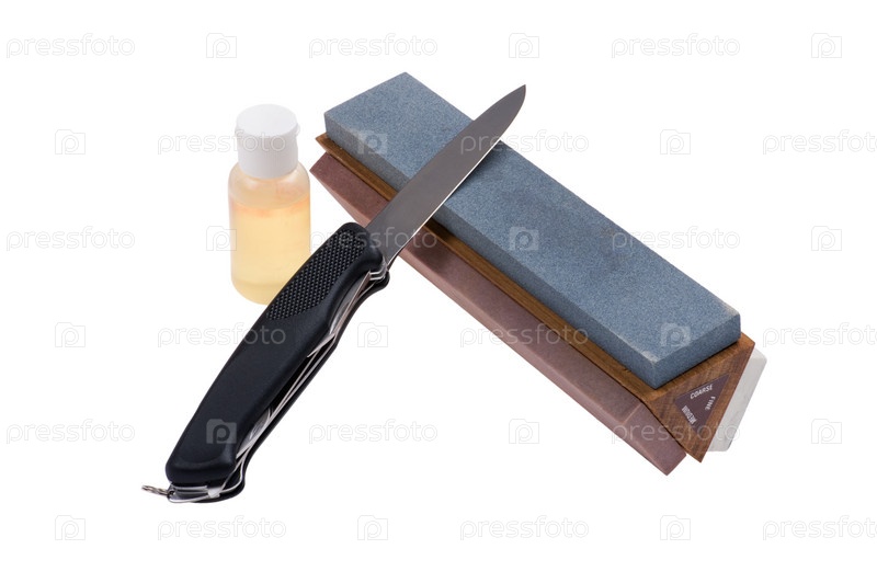 Объект на белом - каменная точилка и нож