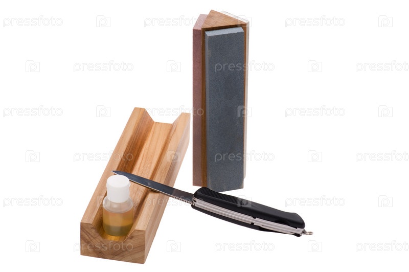 Объект на белом - каменная точилка и нож