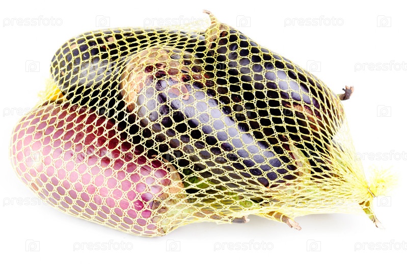 Баклажаны в сетке на белом